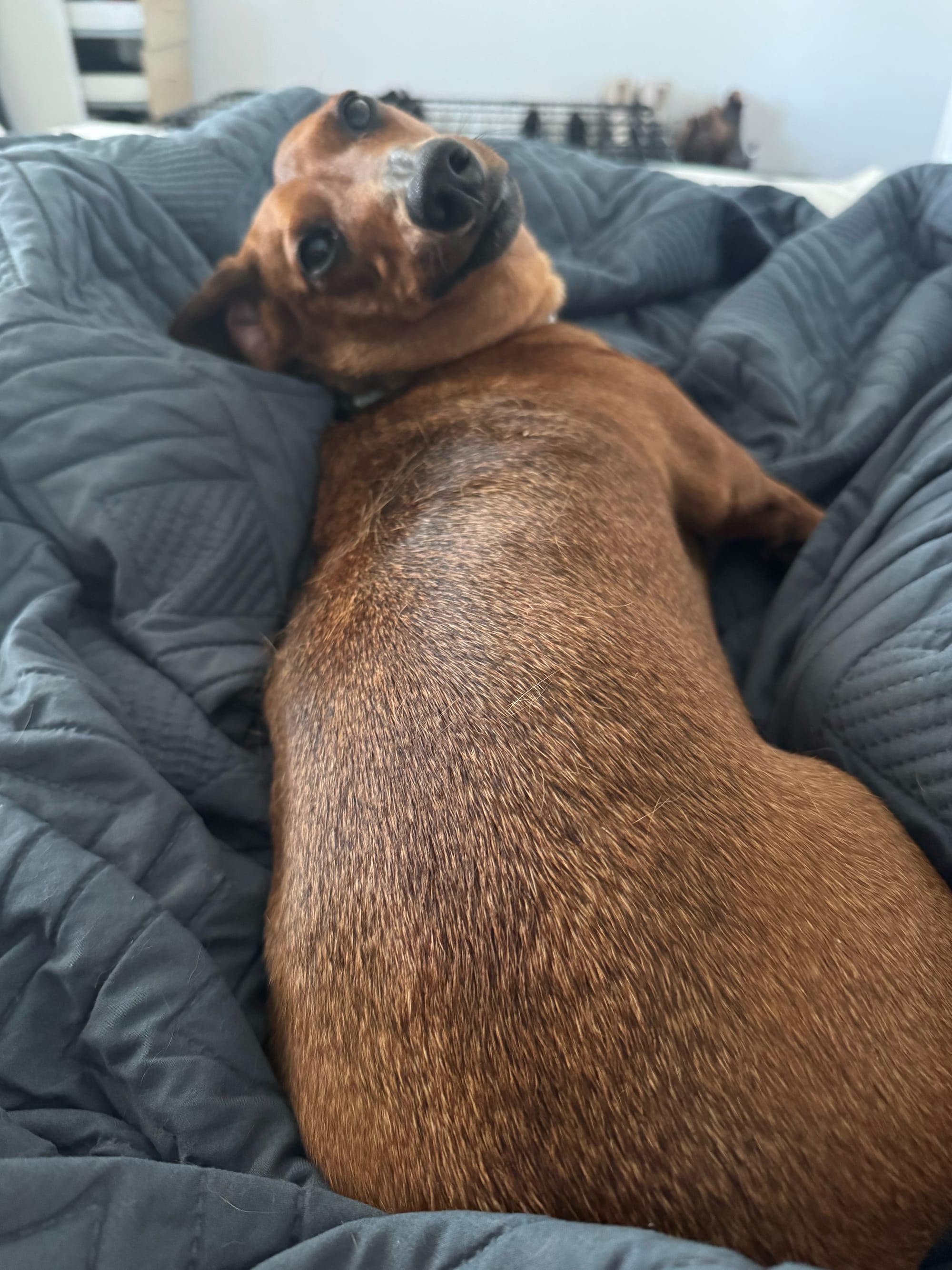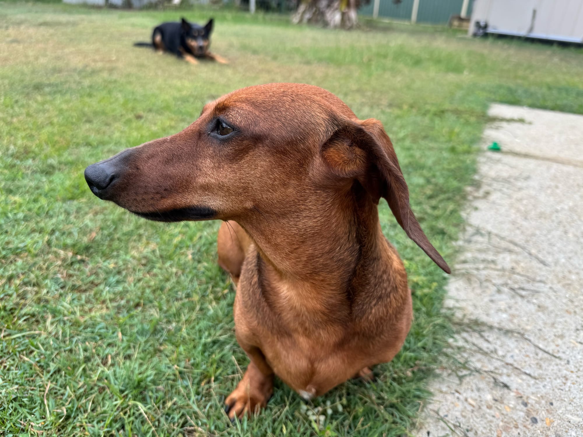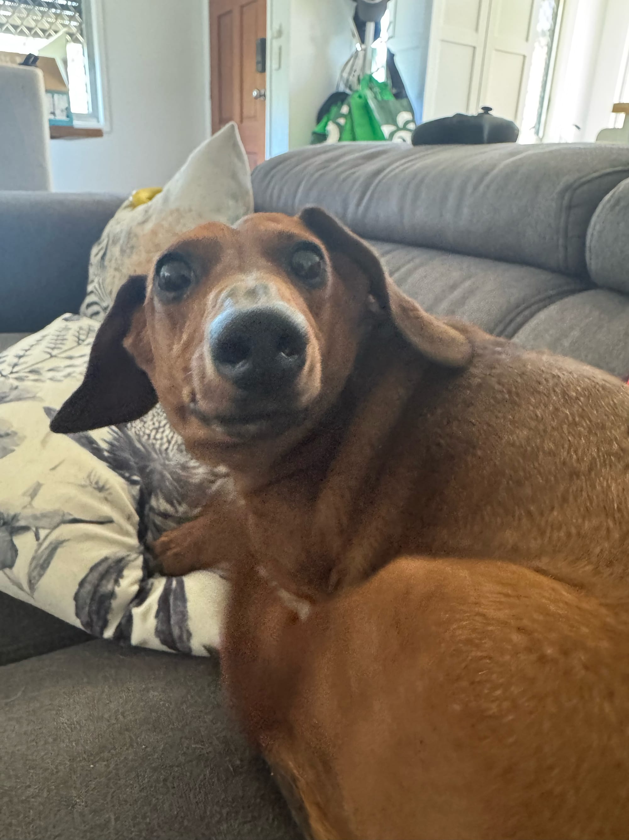 I absolutely thrive on human connection and love being close to my people. I’ll happily follow you around the house, gently nudge your hand for pats, or settle in beside you for some quality cuddle time. I’ve been very good with new faces coming into my home, although I do like to greet visitors with an excited bark just to let everyone know I’m there.