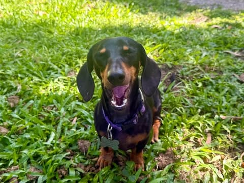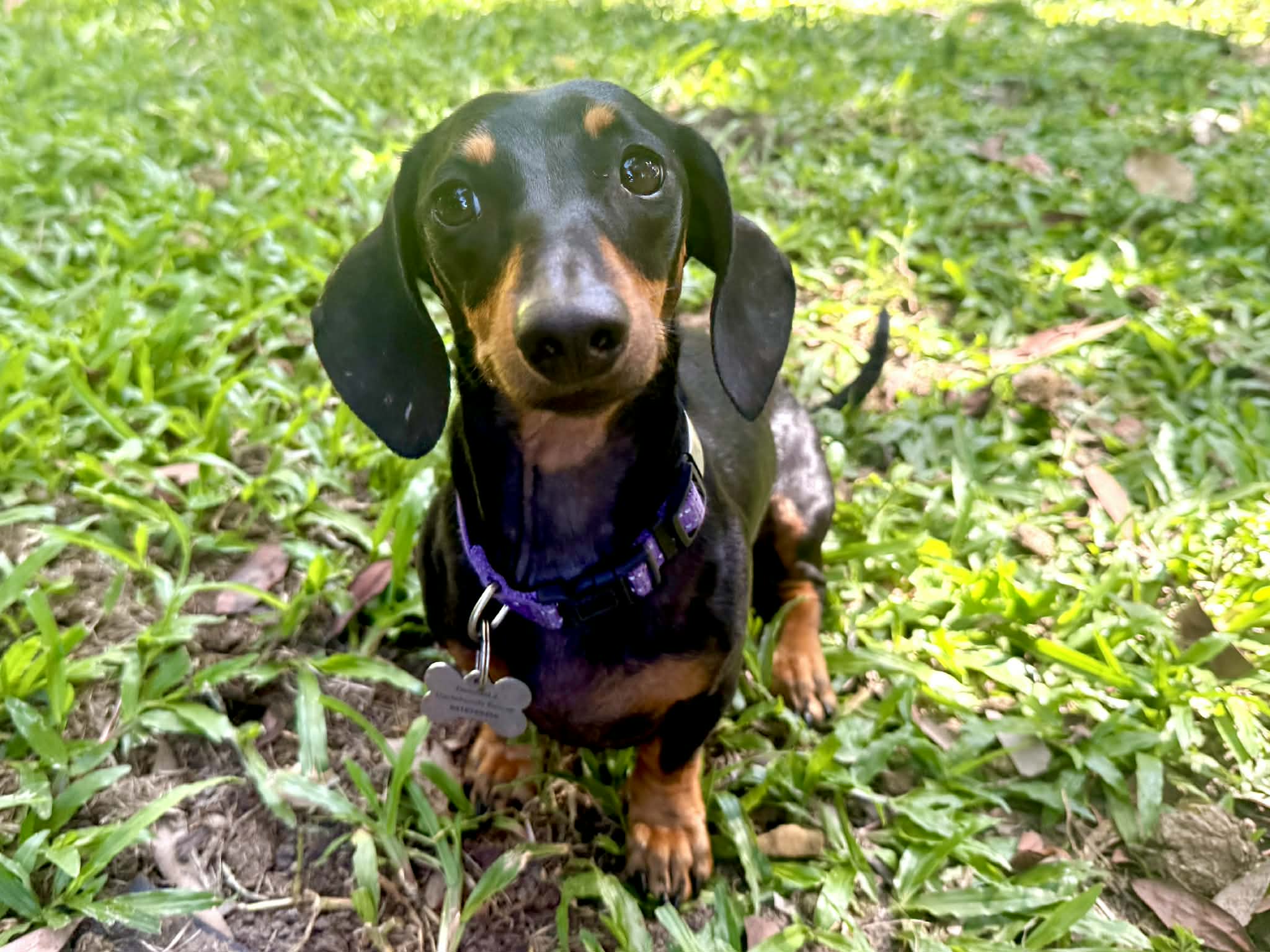 She has a naturally assertive personality and likes to have a say in what’s happening around her. While not overly dominant, she is very much a “little boss” type, particularly with other dachshunds, and is happiest when she feels in charge.
