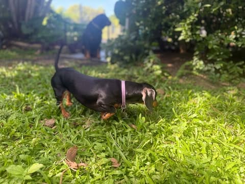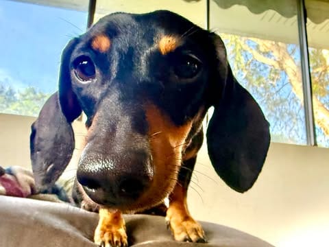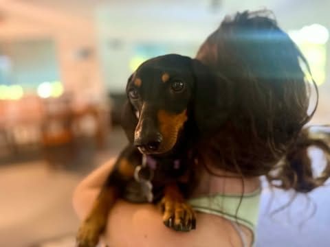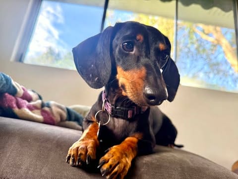Darla gets along well with other dogs when boundaries and dynamics are clear. She does well with male dachshunds and has been living successfully with larger female dogs, although she may test boundaries at times and requires appropriate supervision and management in multi-dog households. She absolutely adores children and is incredibly patient, gentle, and tolerant, making her well suited to homes with young kids.