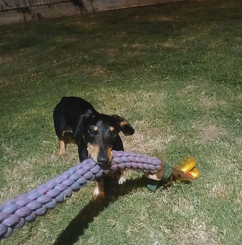 I’m a perfectly slender little sausage if I do say so myself with eyes to melt your heart. If you’re searching for a loyal companion who’s just as happy pottering in the garden as he is snuggling on the couch, then I might just be your guy.