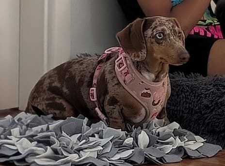 • Dapple Female Miniature Dachshund who is 2 years old weighing 6kg (currently losing weight)