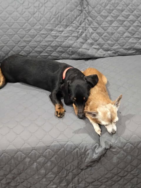 Playful Spirit – Loves tug of war, chase, and zooming around the yard with her doggy friends. Currently lives with 3 dachsies and a chihuahua.