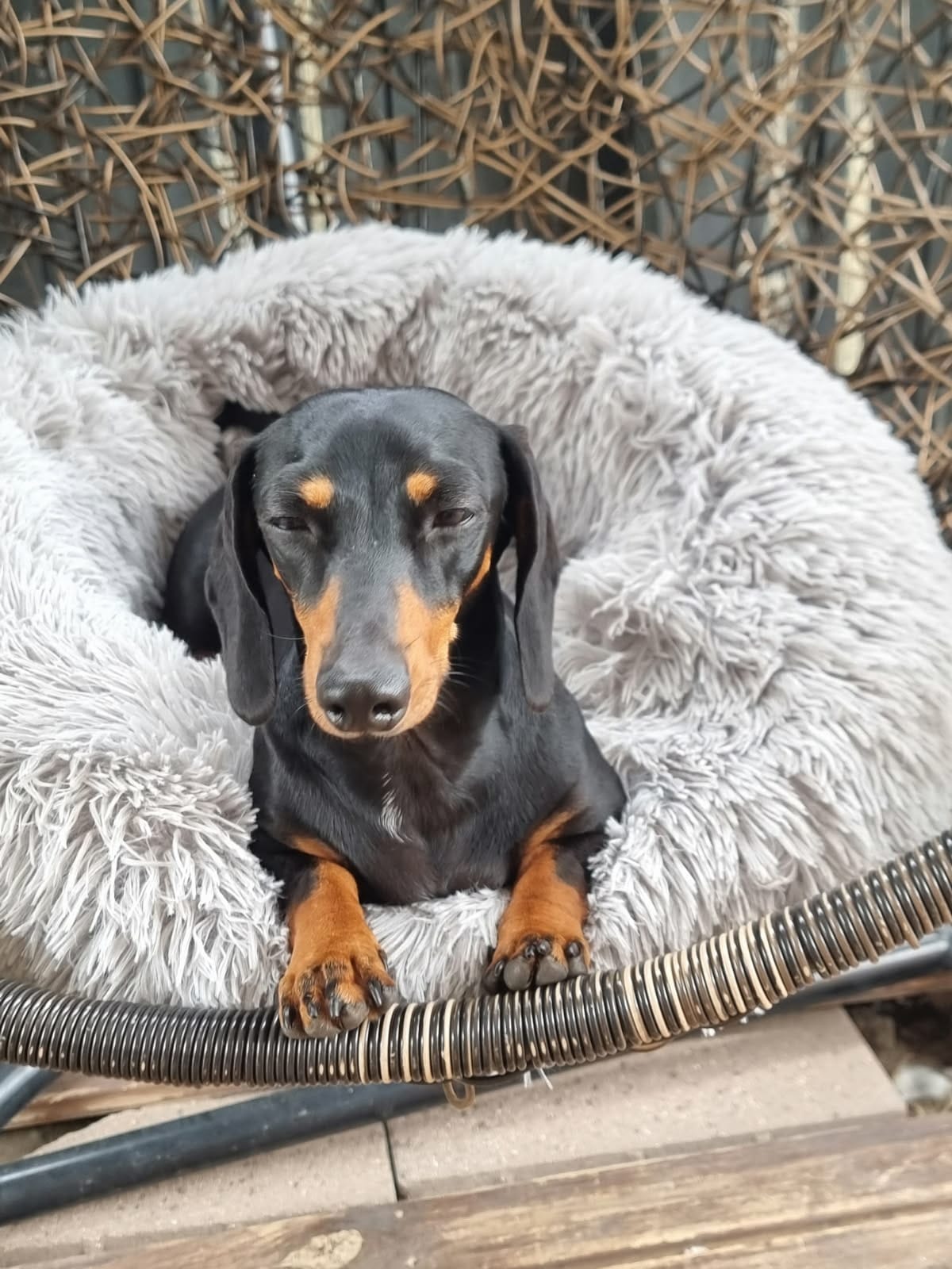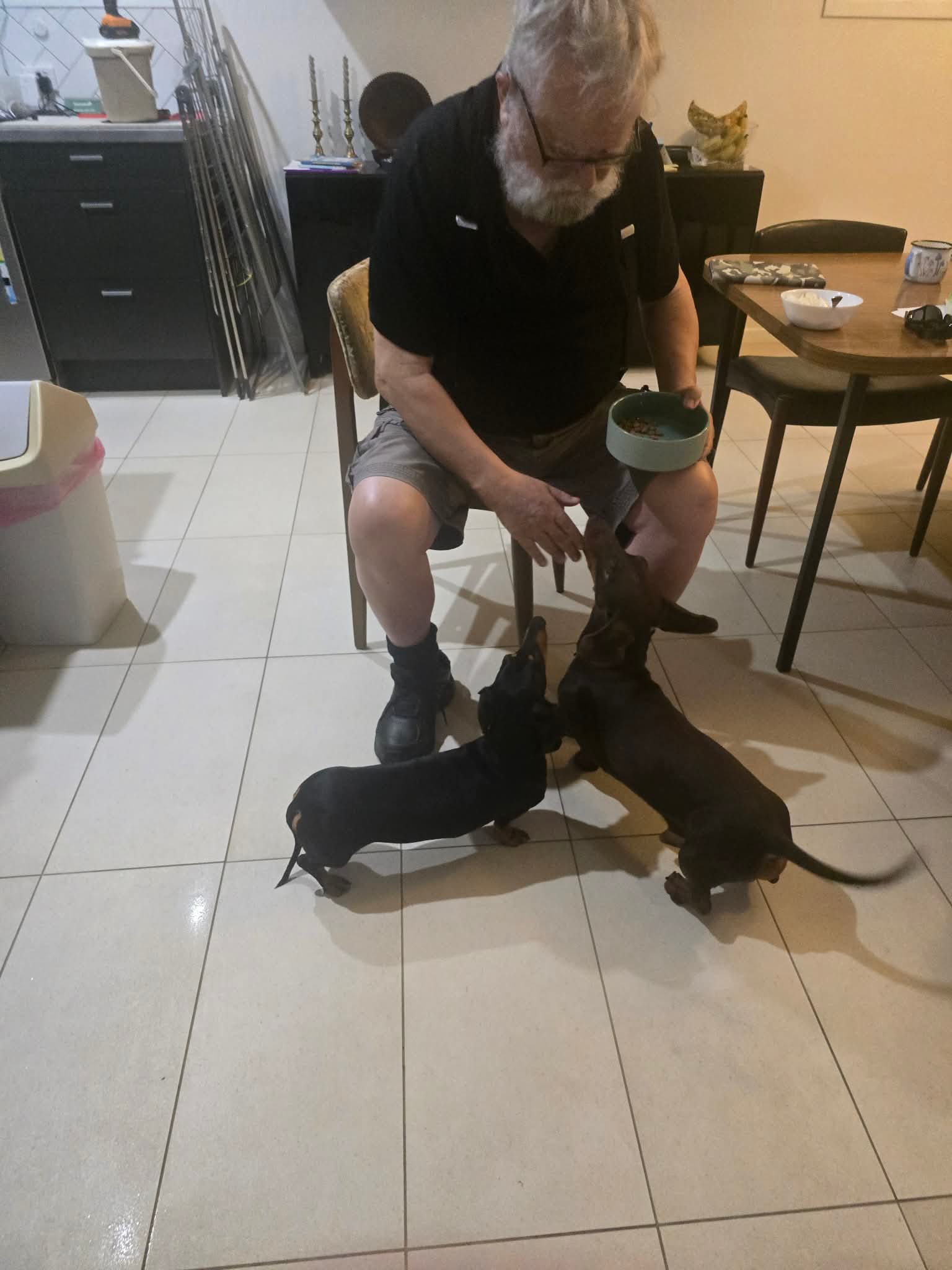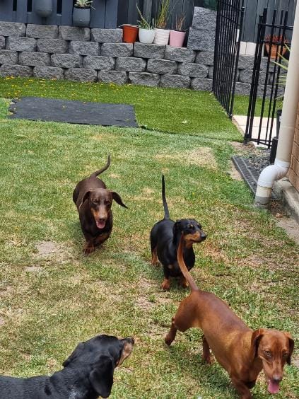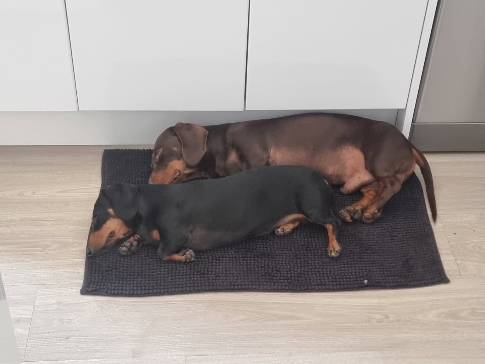 Together, Maverick and Penny are inseparable. They love car rides, walk well as a team, and often sleep or rest side by side. Like most dachshunds, they’ll happily alert bark to let you know when someone’s around — no doorbell required.