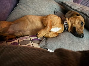I’m affectionate, loyal, gentle, and ready to bond deeply with someone who will cherish me. I am not shaped from the usual dachshund recipe. Where others bark, I simply breathe; and am happy with a fur friend/s if no one is home.