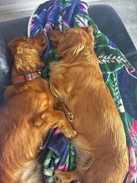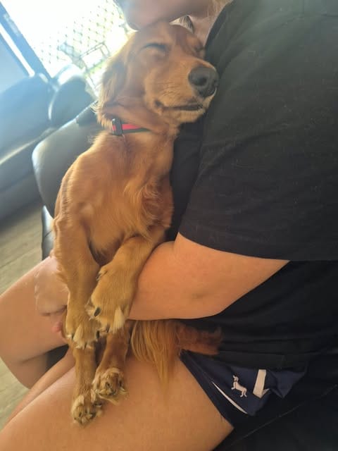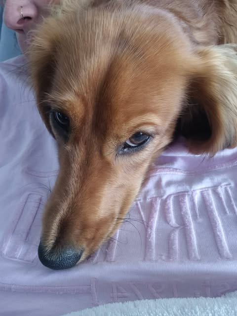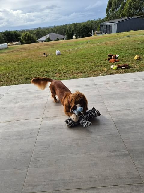 I love nothing more than playing and snuggling with my foster mates, Dachshunds; Chihuahua; Pomeranian and Maltese. Especially the long hair girl! I think that little Chihuahua runs the household though, as he puts me in my place when I get a bit too naughty or into his face. After all I am a typical puppy/teenager, a little naughty with lots of energy but always up for cuddles and puppy kisses.