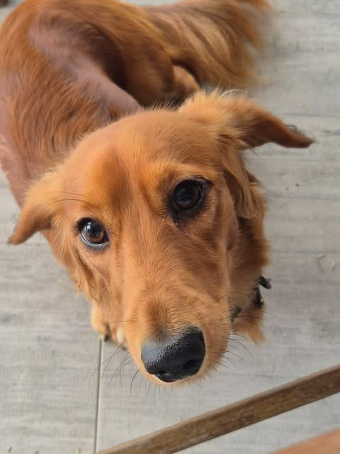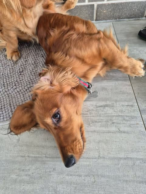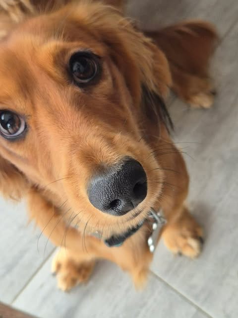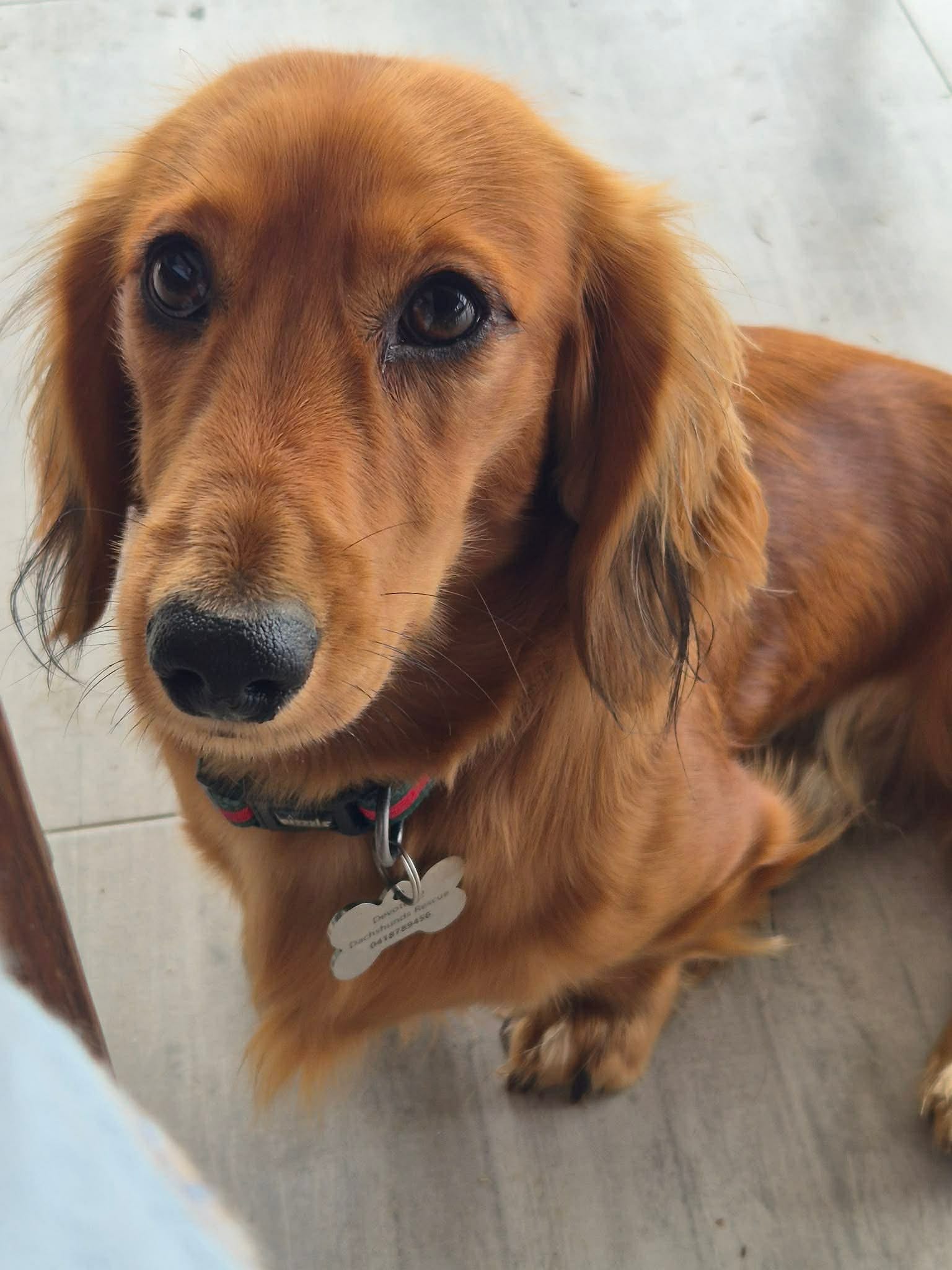 A 9-months old and very cheeky red, long haired Mini Dachshund weighing 6.5kg