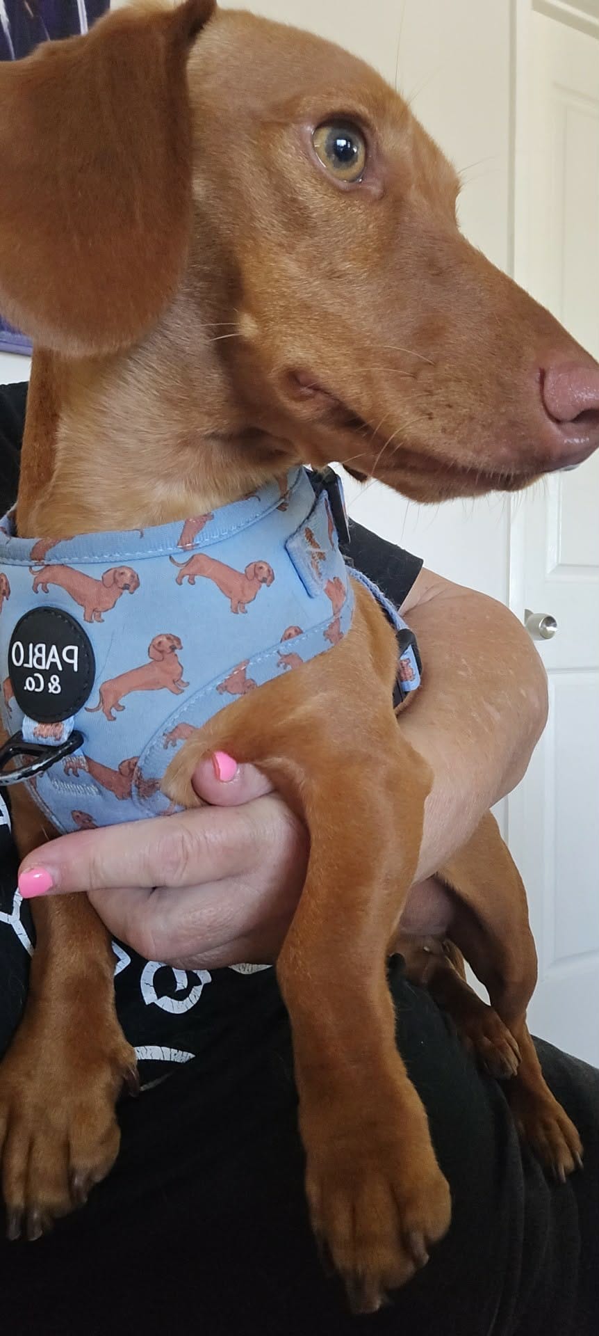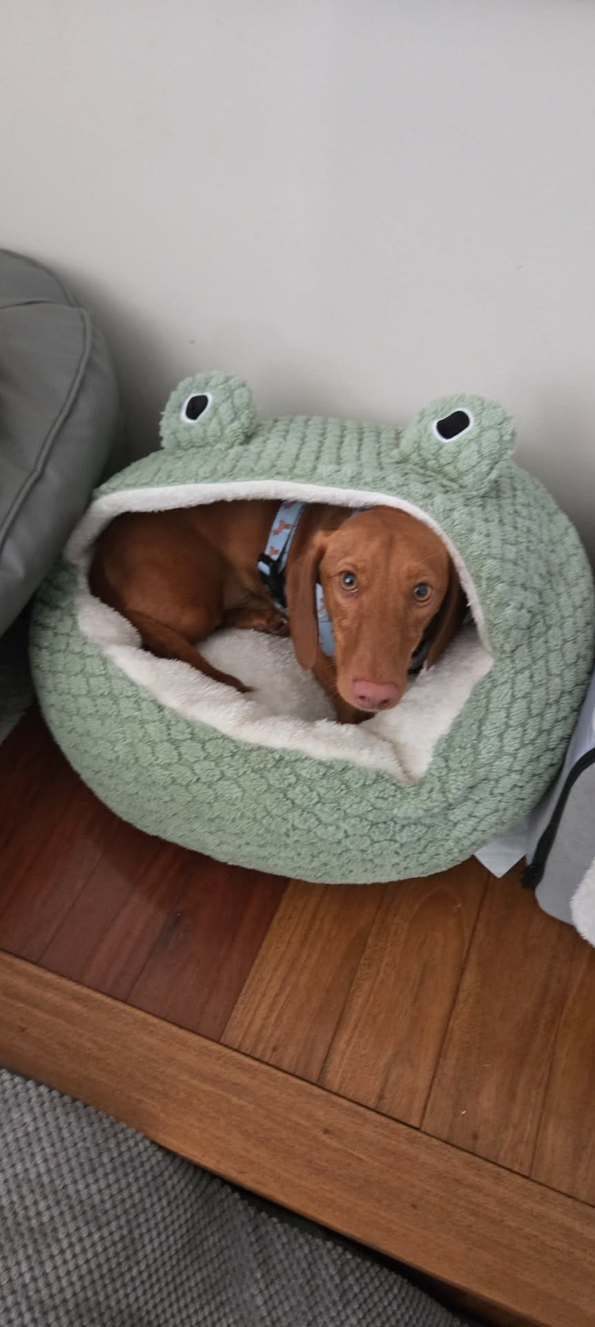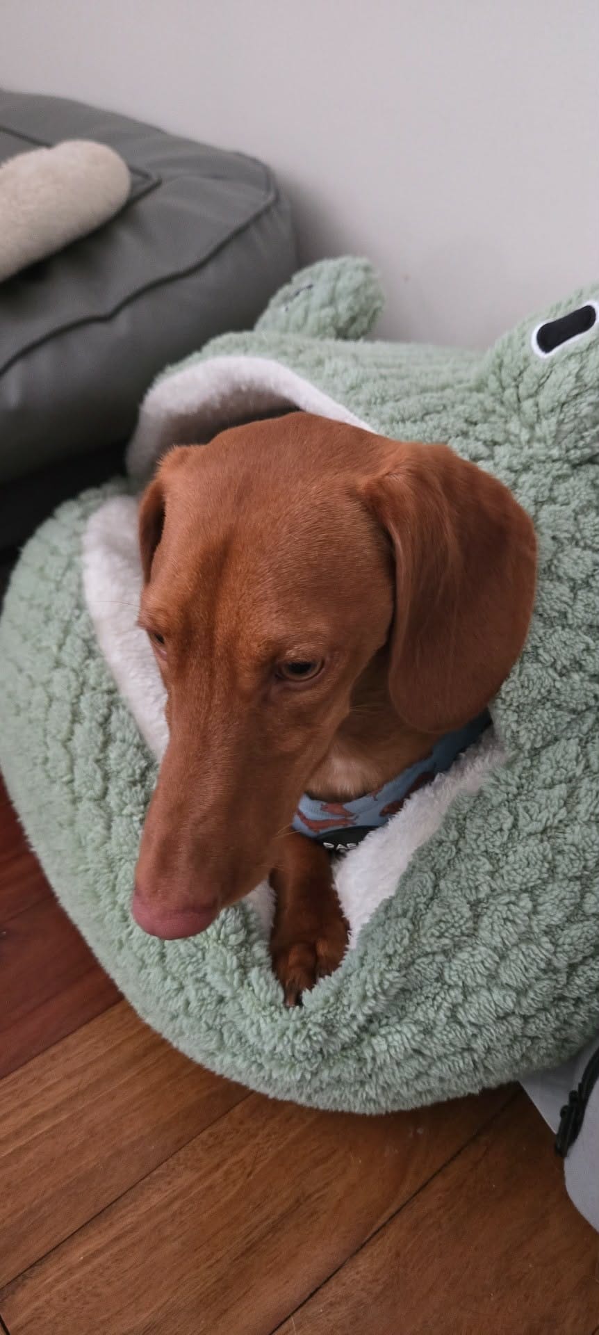 gentlest little sausage you’ll ever meet. My fur is soft as warm velvet, my ears fall like cuddly little curtains, and my big brown eyes are known for stopping humans in their tracks. One look is all it takes, and your heart will be mine.