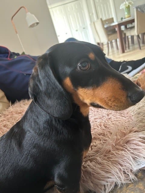 Winston sleeps right through the night with no issues. He plays well with other Dachshunds however, he does like a lot of attention. Once he has worn himself out of an evening